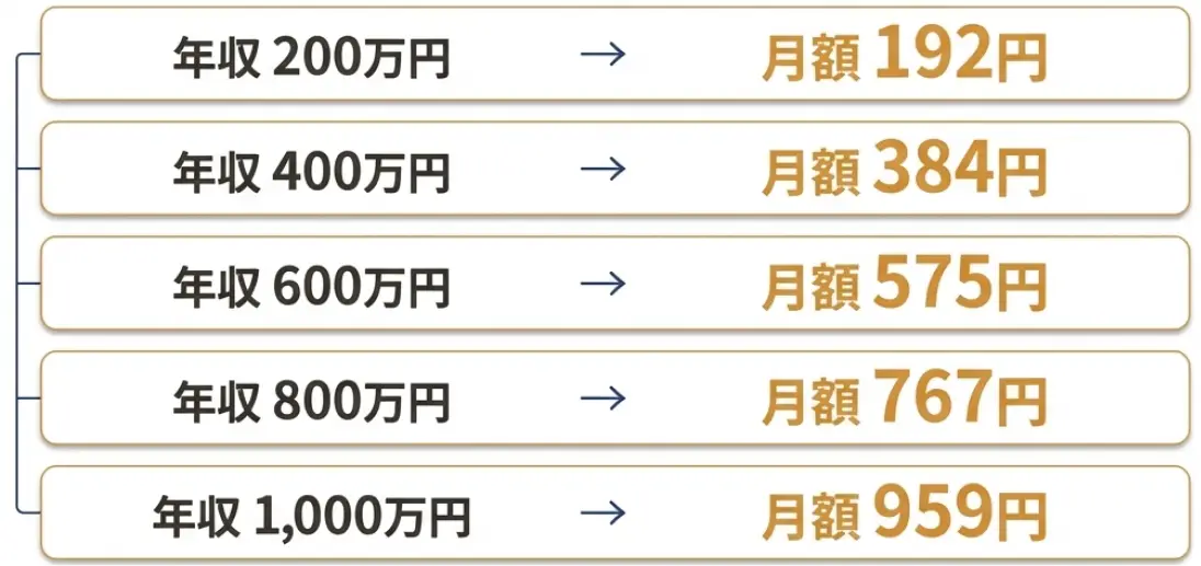 • 本人負担額: 上記で計算した金額の半分(標準報酬月額 × 0.23% × 1/2)