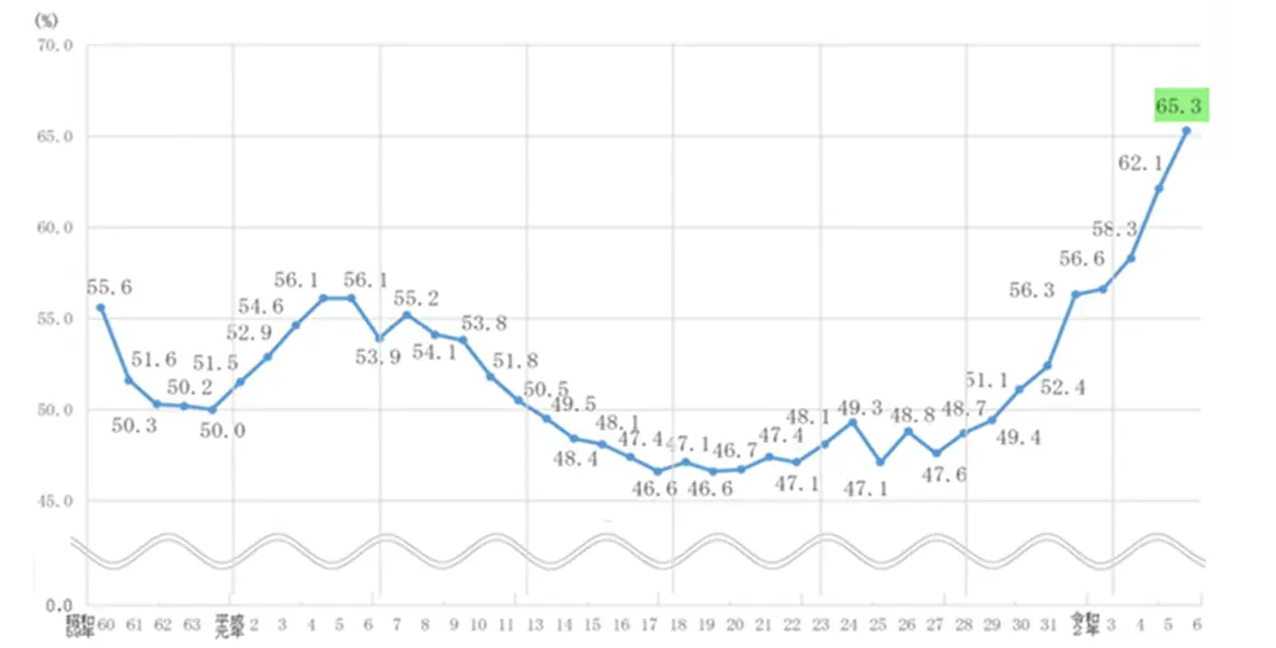 厚生労働省では、年次有給休暇を取得しやすい環境整備を推進するため、毎年10月を「年次有給休暇取得促進期間」として、集中的な広報を行っています。「過労死等の防止のための対策に関する大綱」(令和6年8月2日閣議決定)により、令和10年までに年次有給休暇の取得率を70%とすることが、政府の目標に掲げられています。一方で、令和5年の年次有給休暇の取得率は65.3%と過去最高となったものの、目標には届いていない状況です。