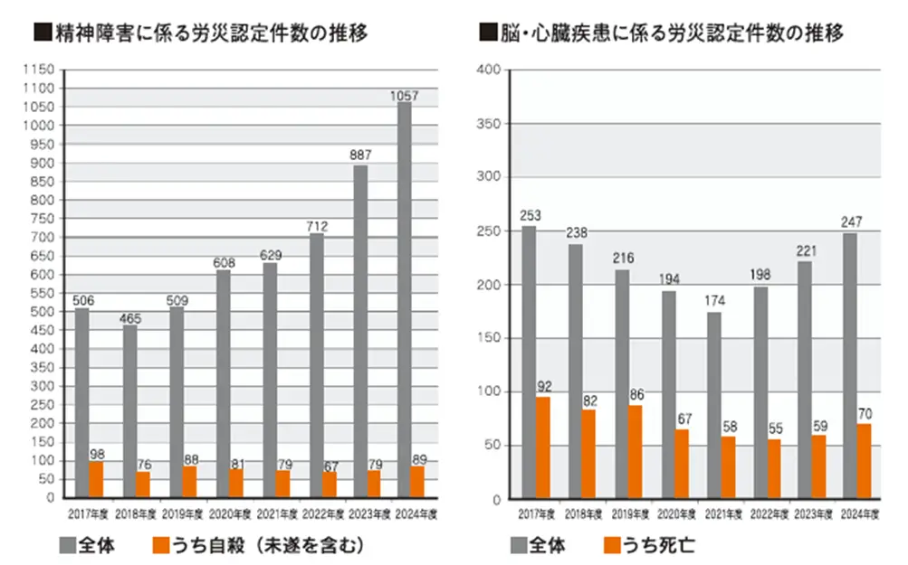 また、業務における強い心理的負荷による精神障害で、正常な認識、行為選択能力や自殺行為を思いとどまる精神的抑制力が著しく阻害され、自殺に至る場合があるとされています。