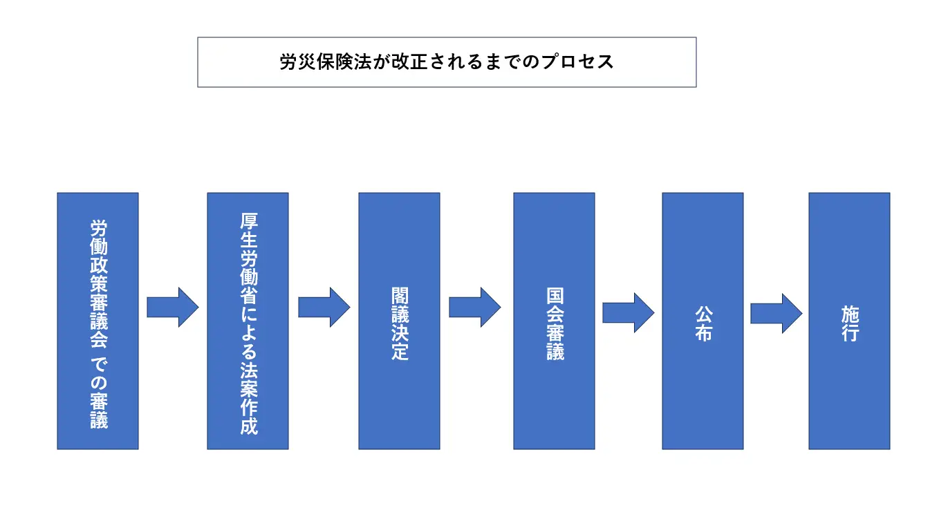 労災保険法が改正されるまでには、一般に次のようなプロセスを経ることになります。