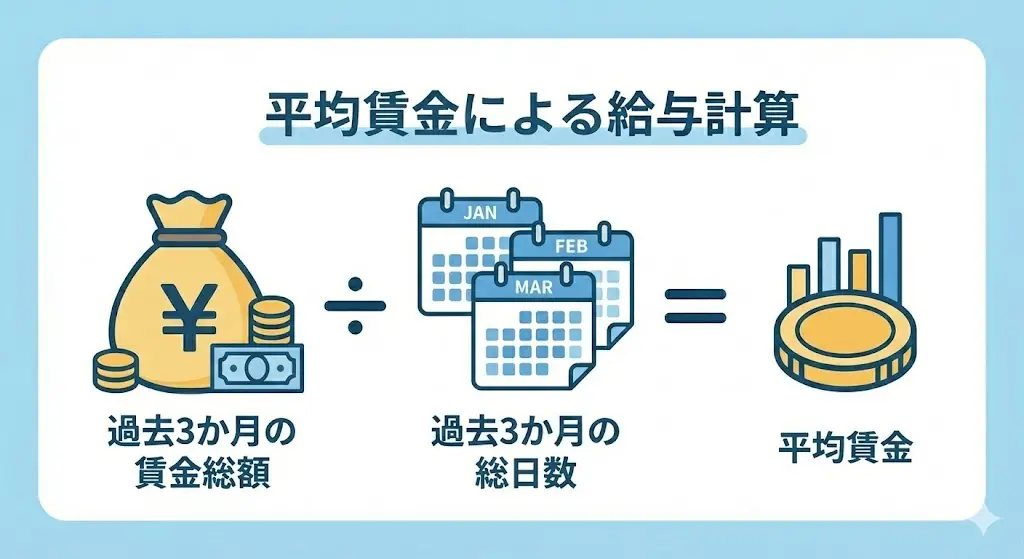 平均賃金とは、直近3か月間に支払われた賃金総額をその期間の総日数で割った金額です。
