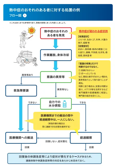 熱中症は初期対応の遅れにより重篤化するおそれがあるため、以下の体制整備が求められています。